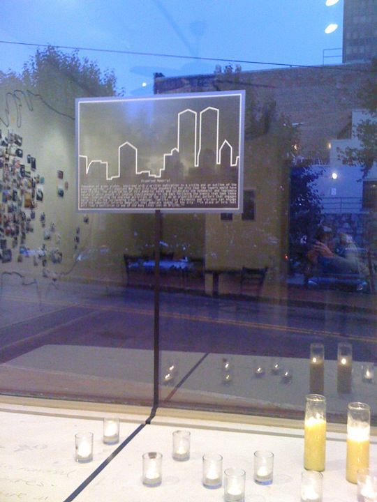 In a few hours it will be the one year anniversary since we announced Dispersed Memorial phase II to the world and when we began expanding our team and growing collectively with ambassadors dispersing cards and exchanging memories nationally. After the virtual and physical exhibit/memorial on 9/11/11 and a little rest, we are resuming activity on our blog as the ‘memory cards’ continue to come in. We start this new cycle with photos from Texas. Thanks Dustin White!