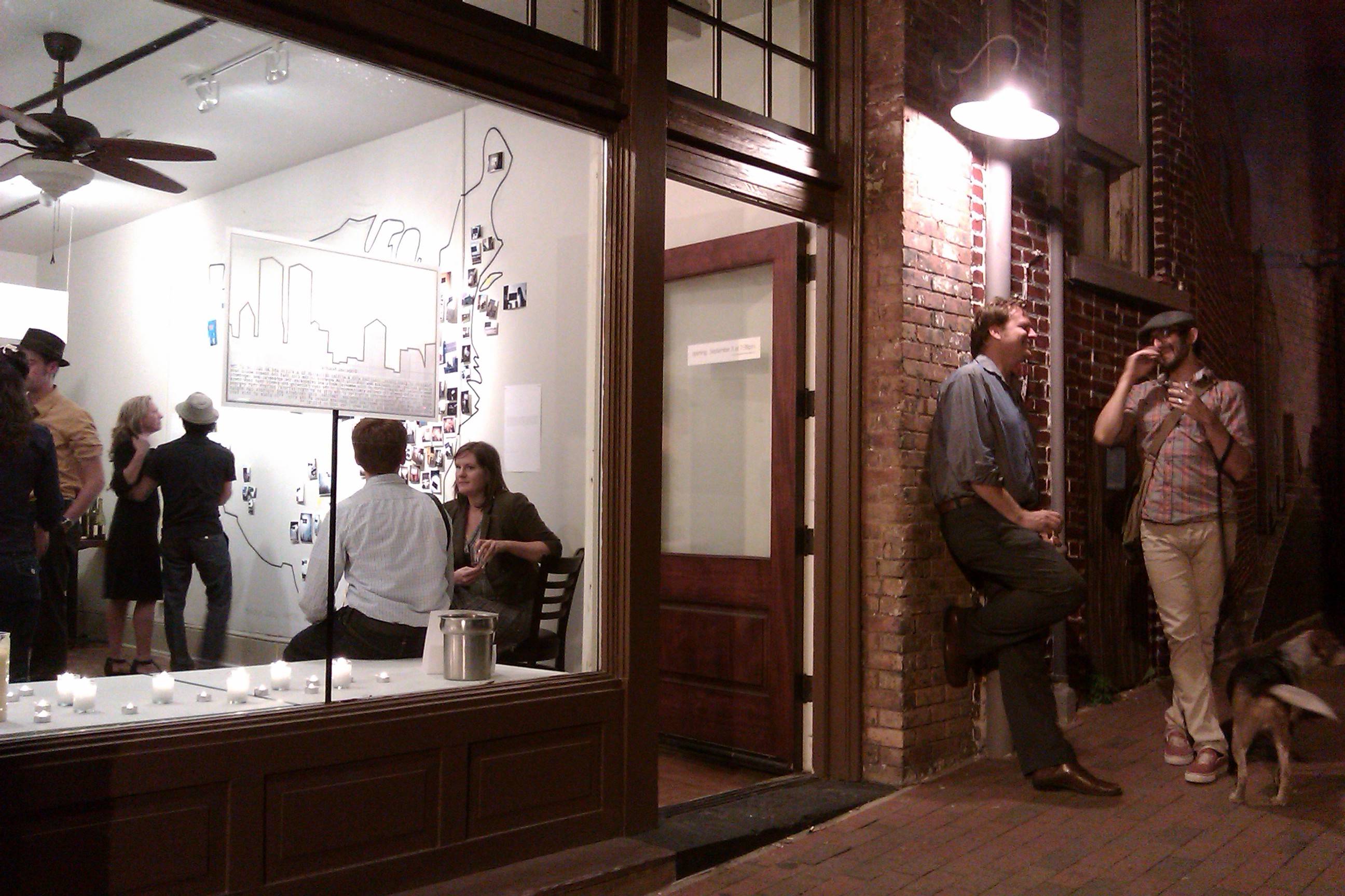 Our goal has been to construct two conversing collective memorials, a virtual database of stories and images and the physical dispersed installation in the city. In honor of the 10th anniversary of the event, we invite you locally within Asheville to 5 Walnut or virtually from anywhere nationally or globally to our virtual memorial showcasing the project’s progress in dispersing ‘memory cards.’ at www.dispersed-memorial.net