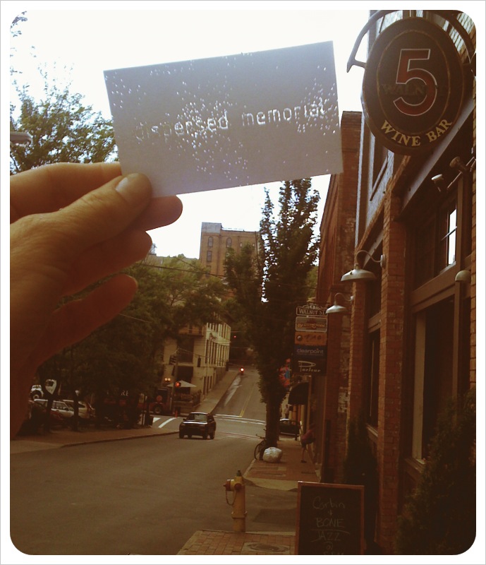 Thanks to ALL of our ambassadors for sharing the cards and initiating moments of remembrance! ‘memory cards’ are lighting a collective memorial nationwide. Do feel free to scroll through the blog to see the photos coming in from New York City, Asheville, Black Mountain, Charleston, Greenville, Washington D.C… and on the way San Francisco, Venice, Portland, Kansas, Texas, Boston and Tucson! Did I miss something?